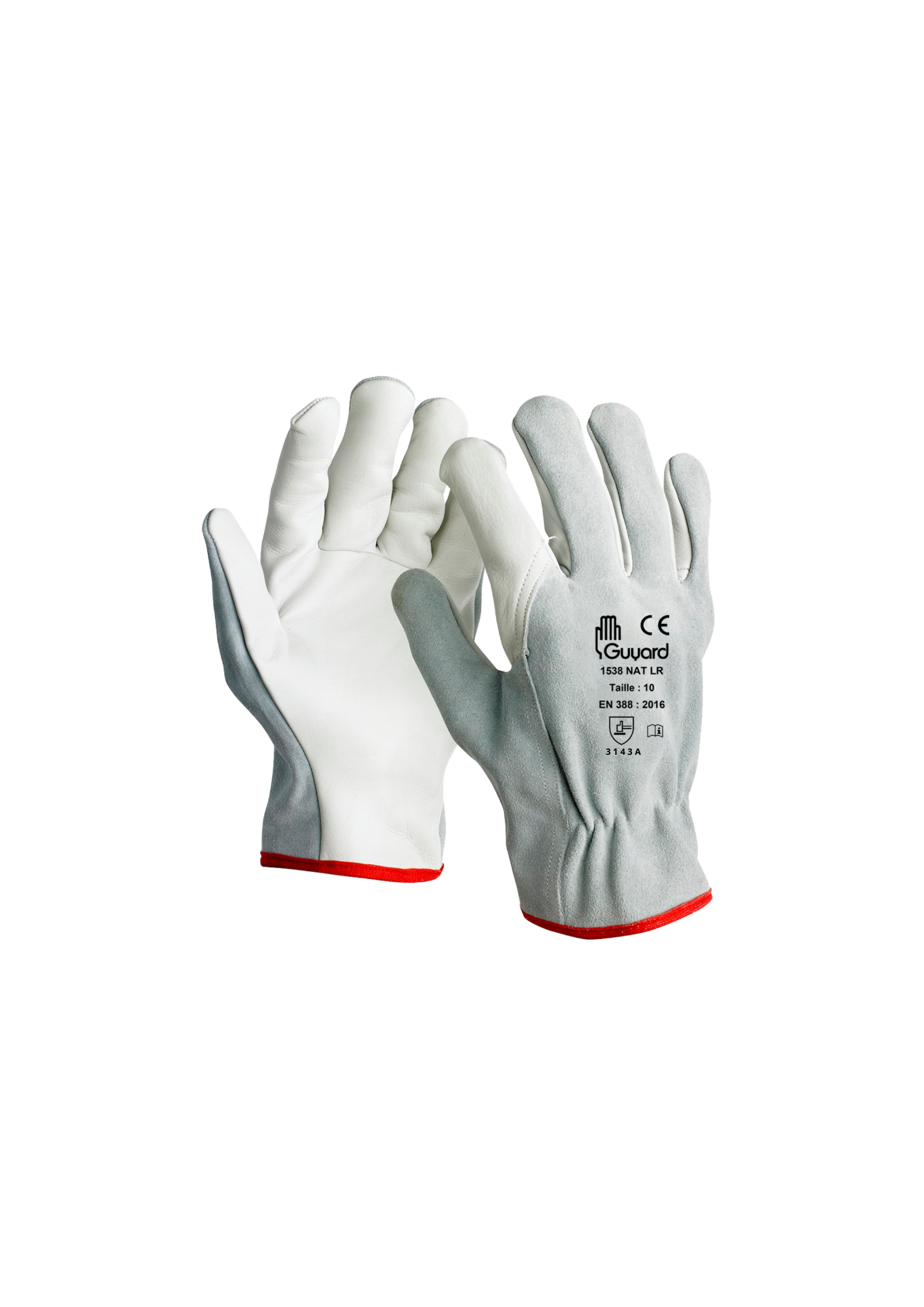 • Gant et paume cuir pleine fleur de bovin naturelle, coupe américaine, tannage chrome