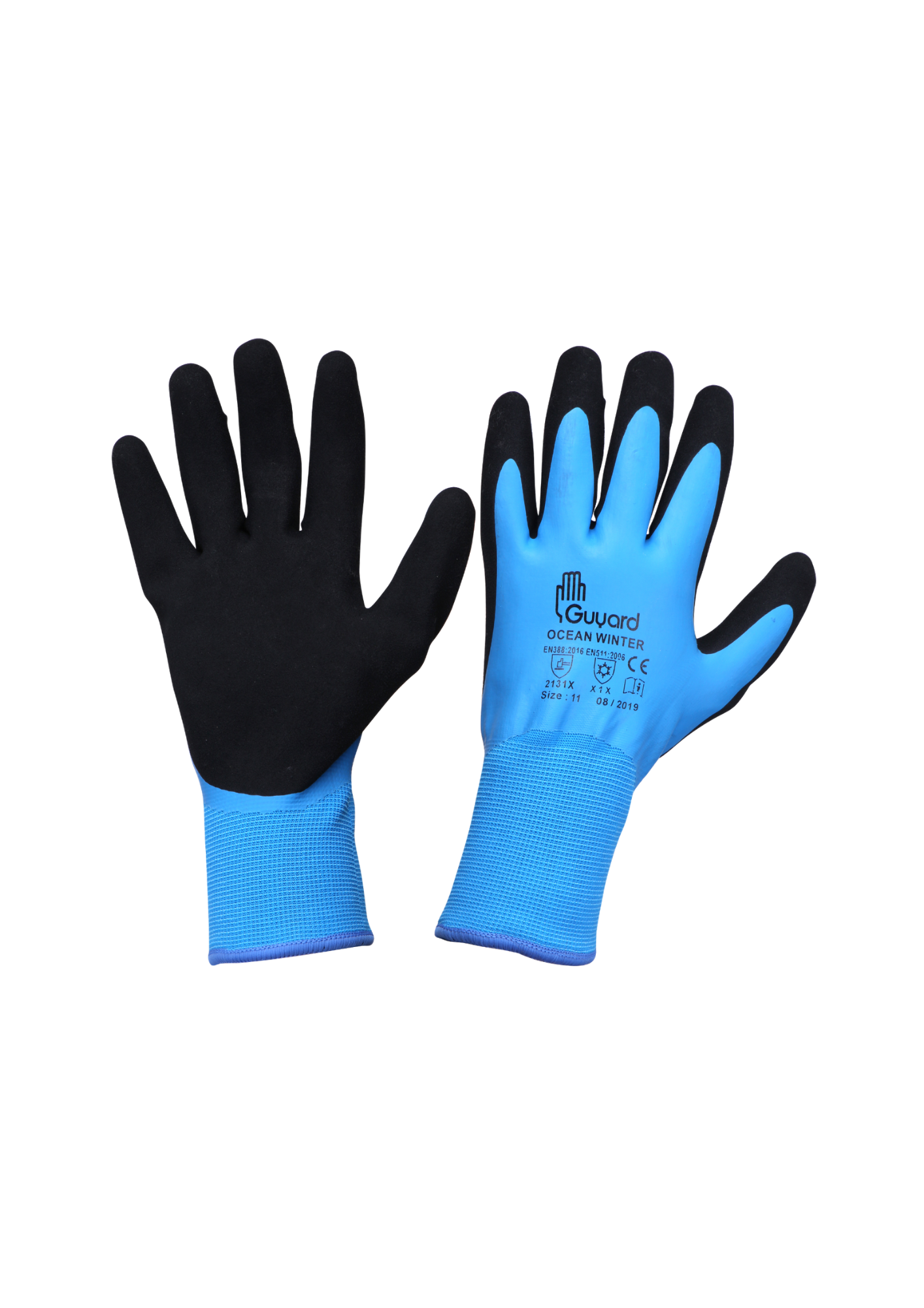 • Double enduction latex : totale lisse bleue + finition sablée noire paume et bout des doigts